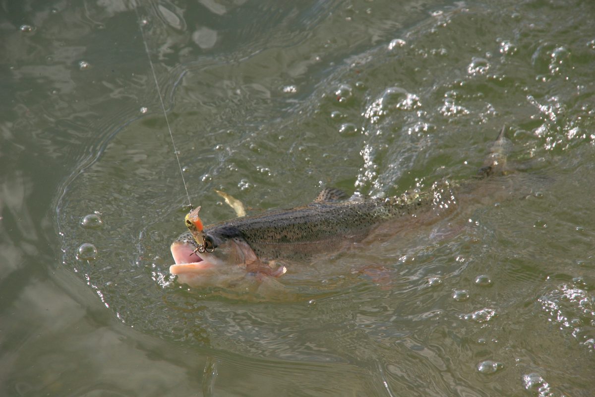 Nun, der Grappler ist ja nicht gerade der größte Wobbler und hat bedingt dadurch ein recht geringes Eigengewicht, lediglich die enthaltenen Rasseln verleihen ihm mehr oder weniger das nötige Gewicht ihn einigermaßen weit zu werfen. Seine sehr schnittige Form trägt natürlich ihren Teil dazu bei. An feinem Gerät kann man damit durchaus gute Wurfweiten erreichen. Meiner Erfahrung nach ist eine Rute mit Wurfgewicht um die 30-60g ideal. Das mag sich im ersten Moment etwas überzogen anhören, aber im Wasser macht der Grappler wirklich ziemlich heftigen Radau und erzeugt eine Menge Widerstand, was man an zu feinem Gerät schlecht kompensieren kann. Dann ist die Rute meist schon fast ausgelastet und ein effektiver Anhieb nicht mehr möglich. Verhedderungen der Schnur an den beiden Drillingen kamen sehr selten vor, was nicht unbedingt üblich ist.